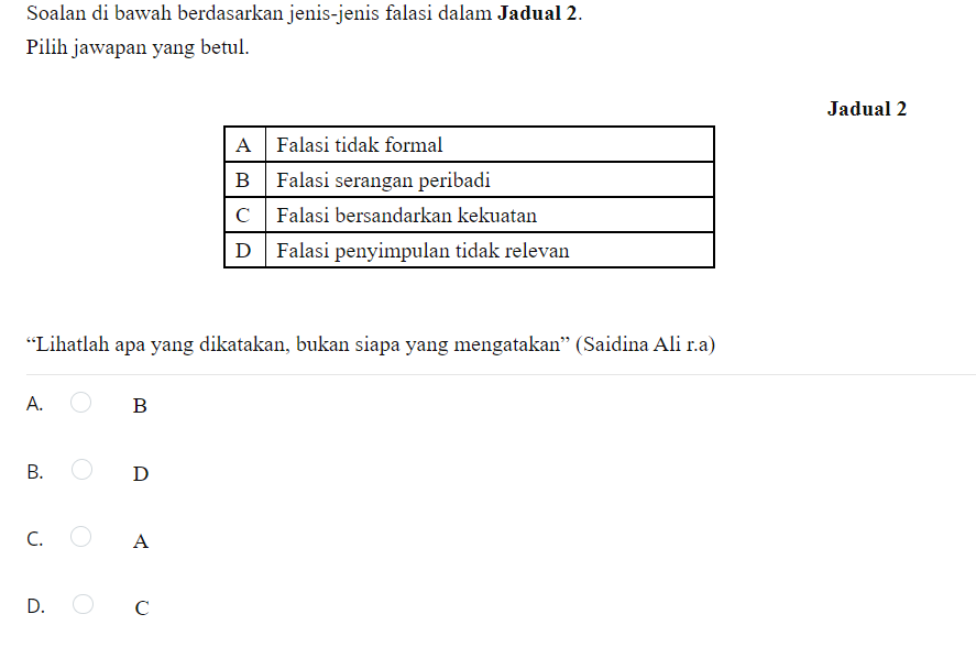 Soalan Di Bawah Berdasarkan Jenis Jenis Falasi Dalam Chegg Com
